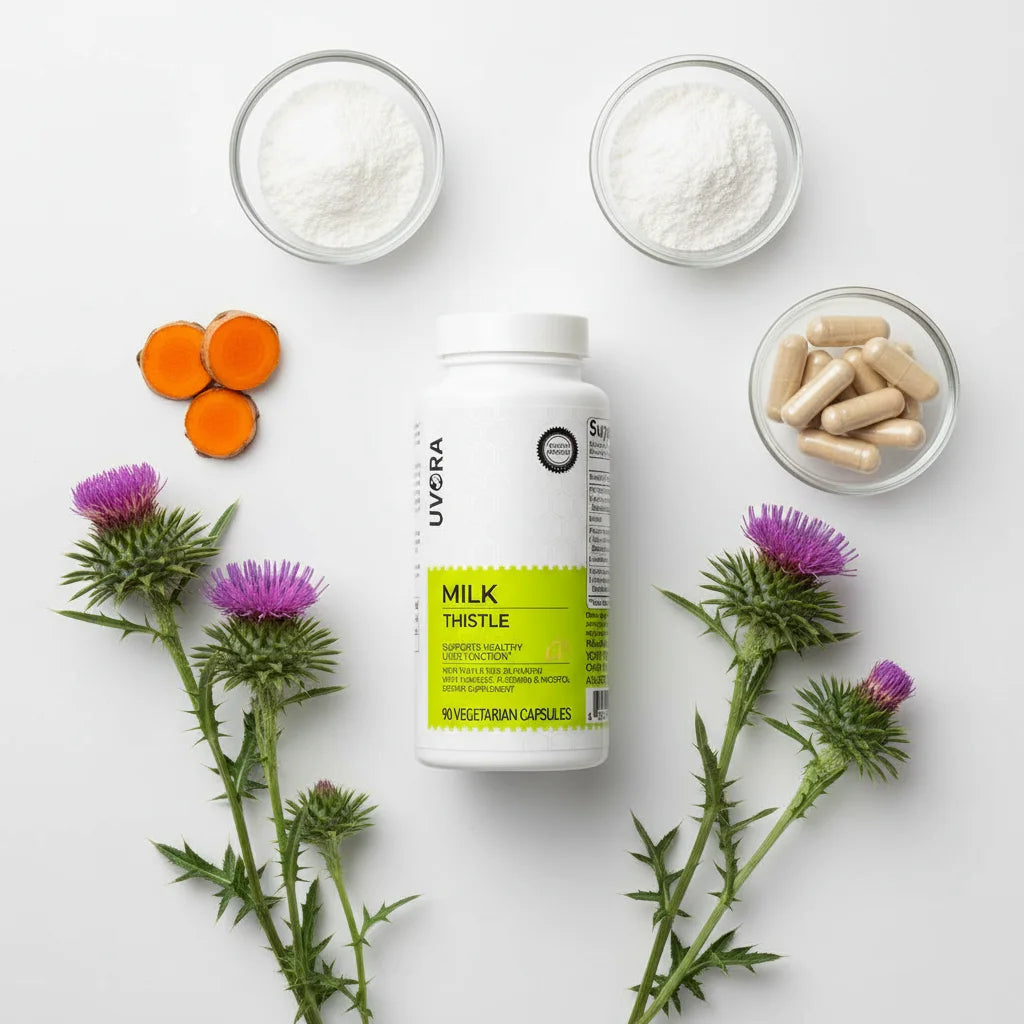 Milk Thistle, a time-honored botanical, gently supports your liver's natural cleansing process, fostering optimal function and helping you feel renewed and balanced from within.
